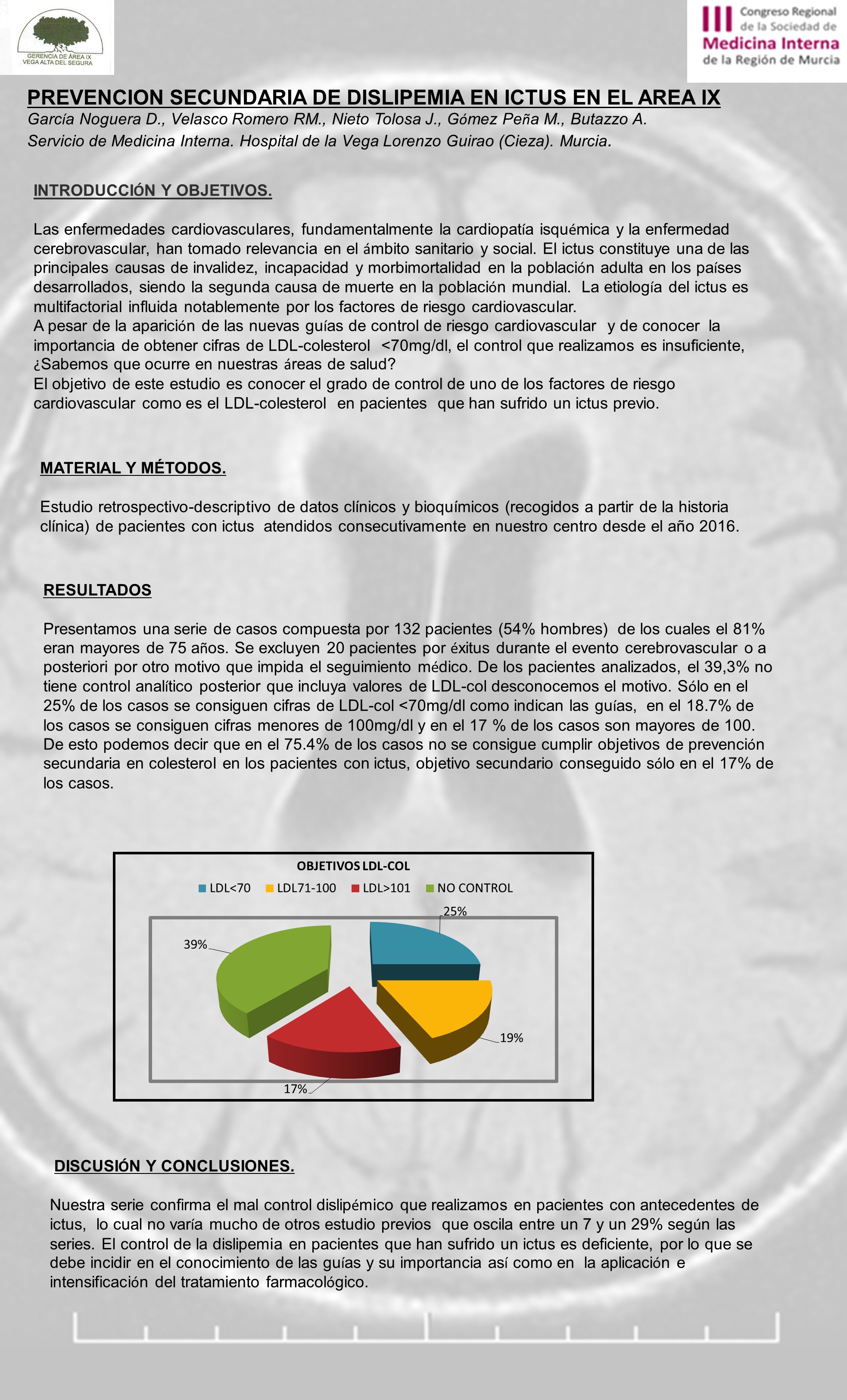 | P11 | Título: Prevención secundaria de dislipemia en ictus en el área IX. Autores: D. García Noguera; R.M. Velasco Romero; J. Nieto Tolosa; M. Gómez Peña; A. Butazzo.. |