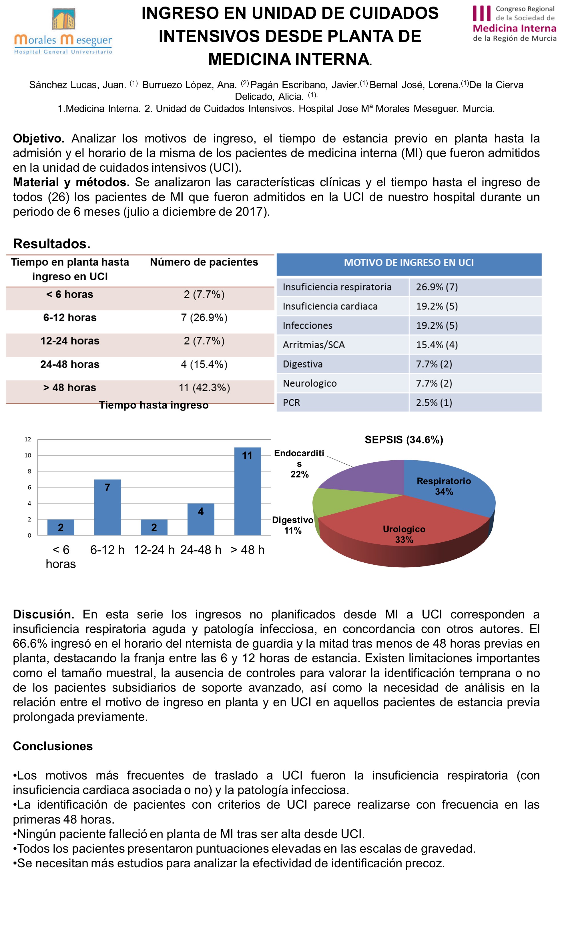 | P21 | Título: Ingreso en Unidad de Cuidados Intensivos desde planta de Medicina Interna. Autores: J. Sánchez Lucas; A. Burruezo López; J. Pagán Escribano; L. Bernal José; A. de la Cierva Delicado. |