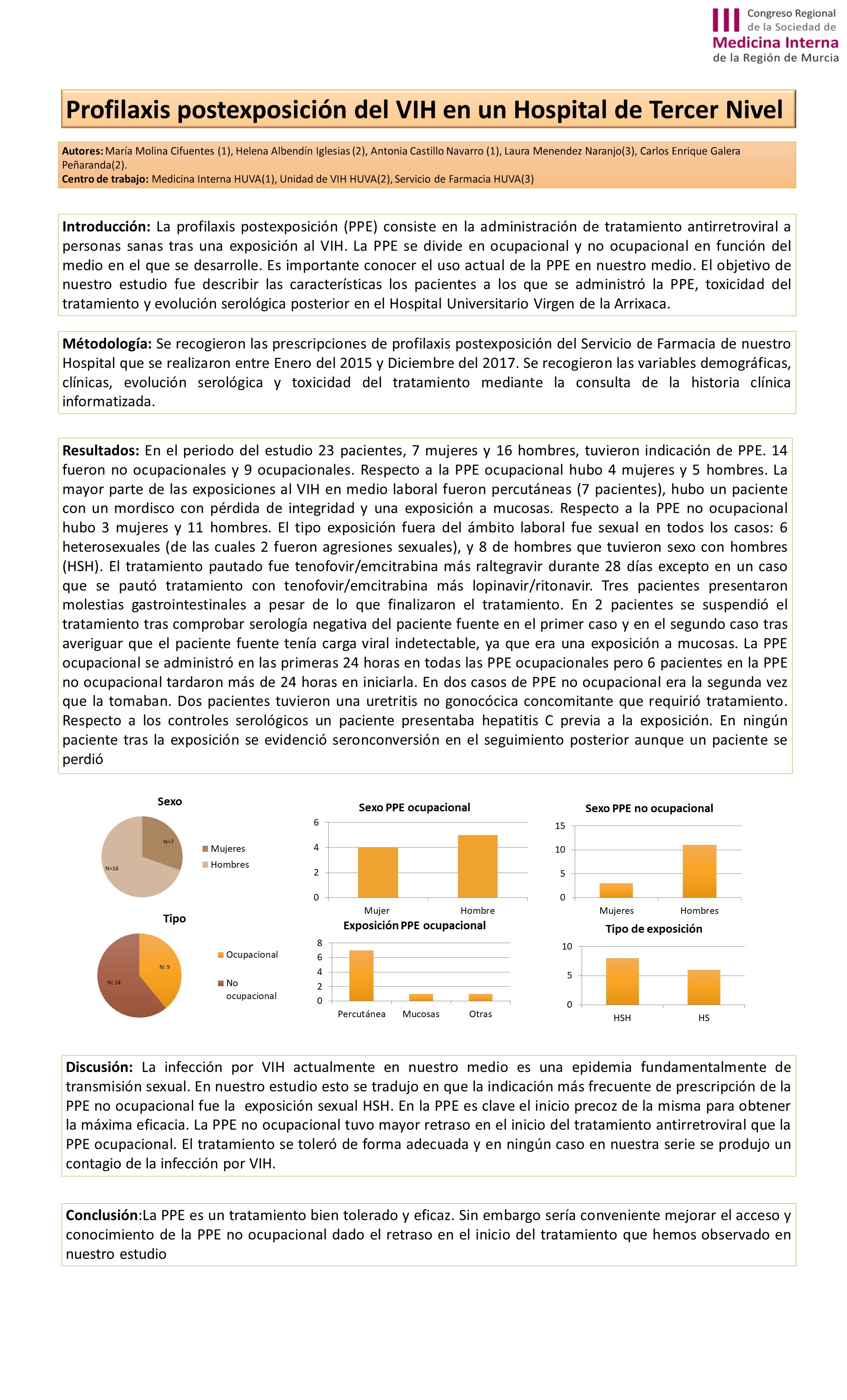 | P53 | Título: Profilaxis postexposición del VIH en un hospital de tercer nivel. Autores: M. Molina Cifuentes; H. Albendín Iglesias; A. Castillo Navarro; L. Menéndez Naranjo; C.E. Galera Peñaranda. |
